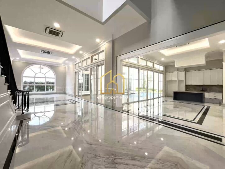 BRAND NEW HOUSE AT KEBAYORAN BARU FOR SALE · LUAS TANAH: 370 sqm · LUAS BANGUNAN: 810 sqm · Master bedroom with big walking closet · 2 Kid rooms · 4 Bathrooms · Unfurnished · Gym room · 2 Powder rooms · Swimming pool · Guest room · Multifunction room · Lift · Salon